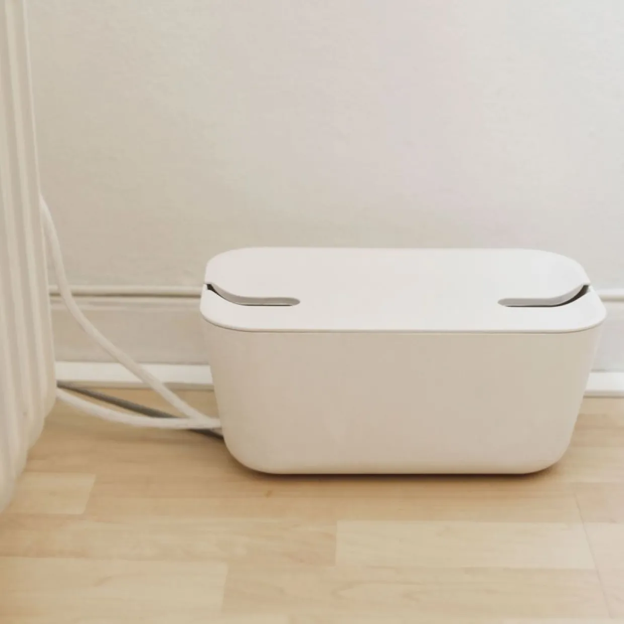 Sladdgömman Hideaway samlar alla laddare och gömmer undan sladdar till diverse elektronisk utrustning på ett snyggt sätt. Sladdgömman är tillverkad av brandsäker plast och botten har ventilationshål för att motverka att behållaren blir för varm. Ett nedfällt antislip-lock förhindrar att apparaturen glider av. Tack vare silikonfötter står sladdgömman stadigt på golvet.