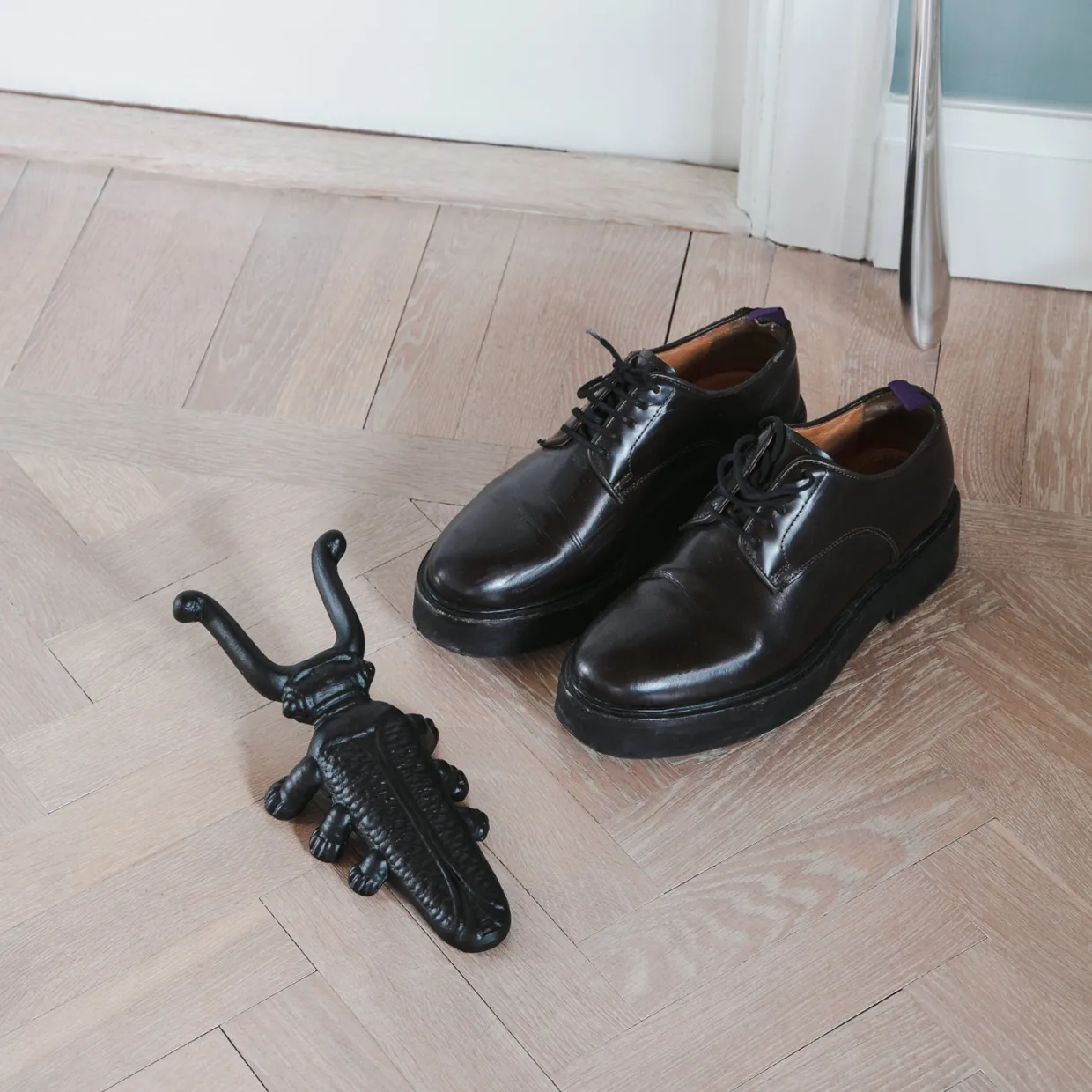 Praktisk stövelknekt i form av en ekoxe, tillverkad av återvunnen aluminium. Formgiven av Oskar Karlsson för anrika Essem Design.