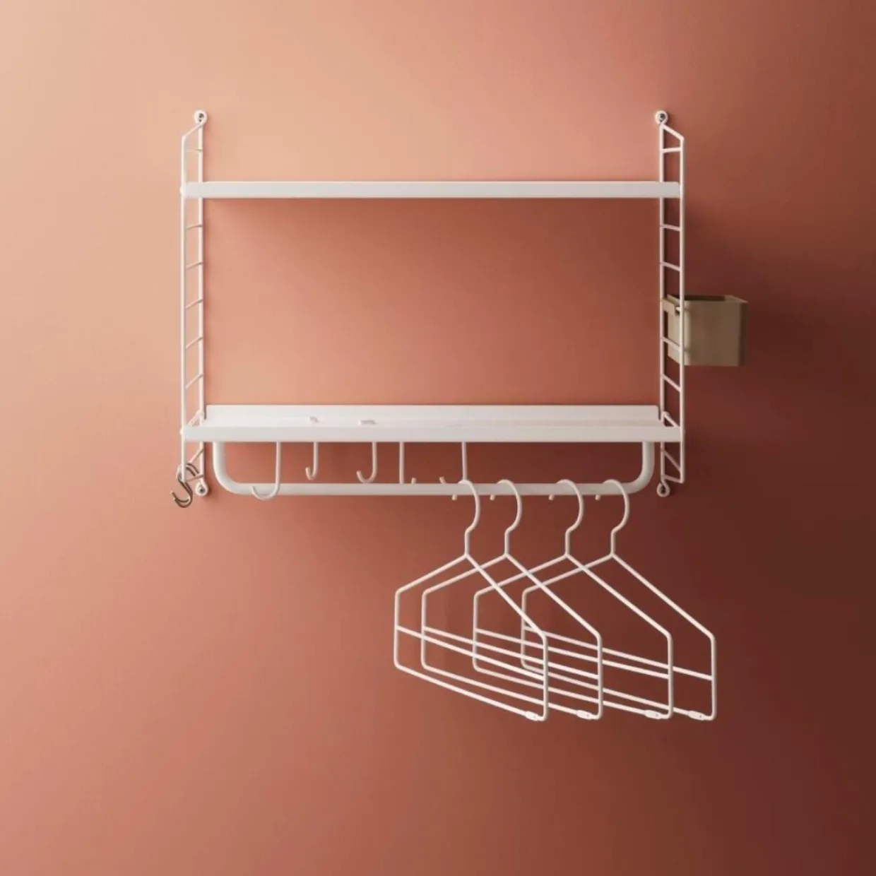 Stringhylla Hall är en elegant och funktionell förvaringslösning perfekt för entrén. Med sina smala gavlar och flexibla hyllplan erbjuder den gott om utrymme för både kläder, väskor och andra accessoarer. Dess stilrena design gör att den passar in i alla hem, samtidigt som den hjälper till att hålla ordning och reda i hallen.