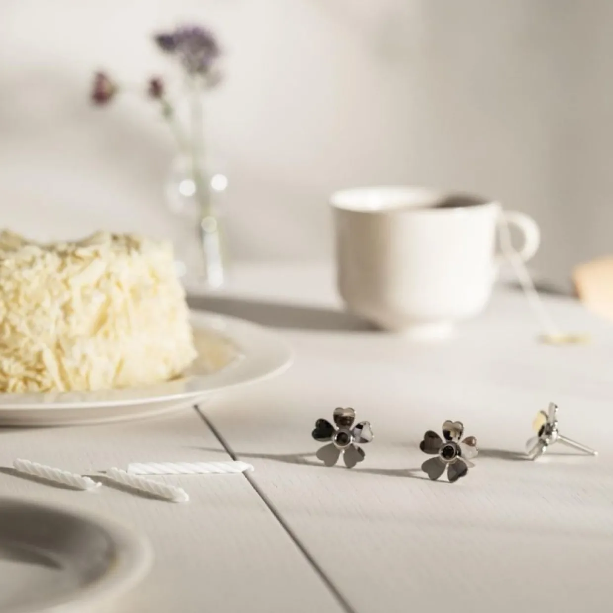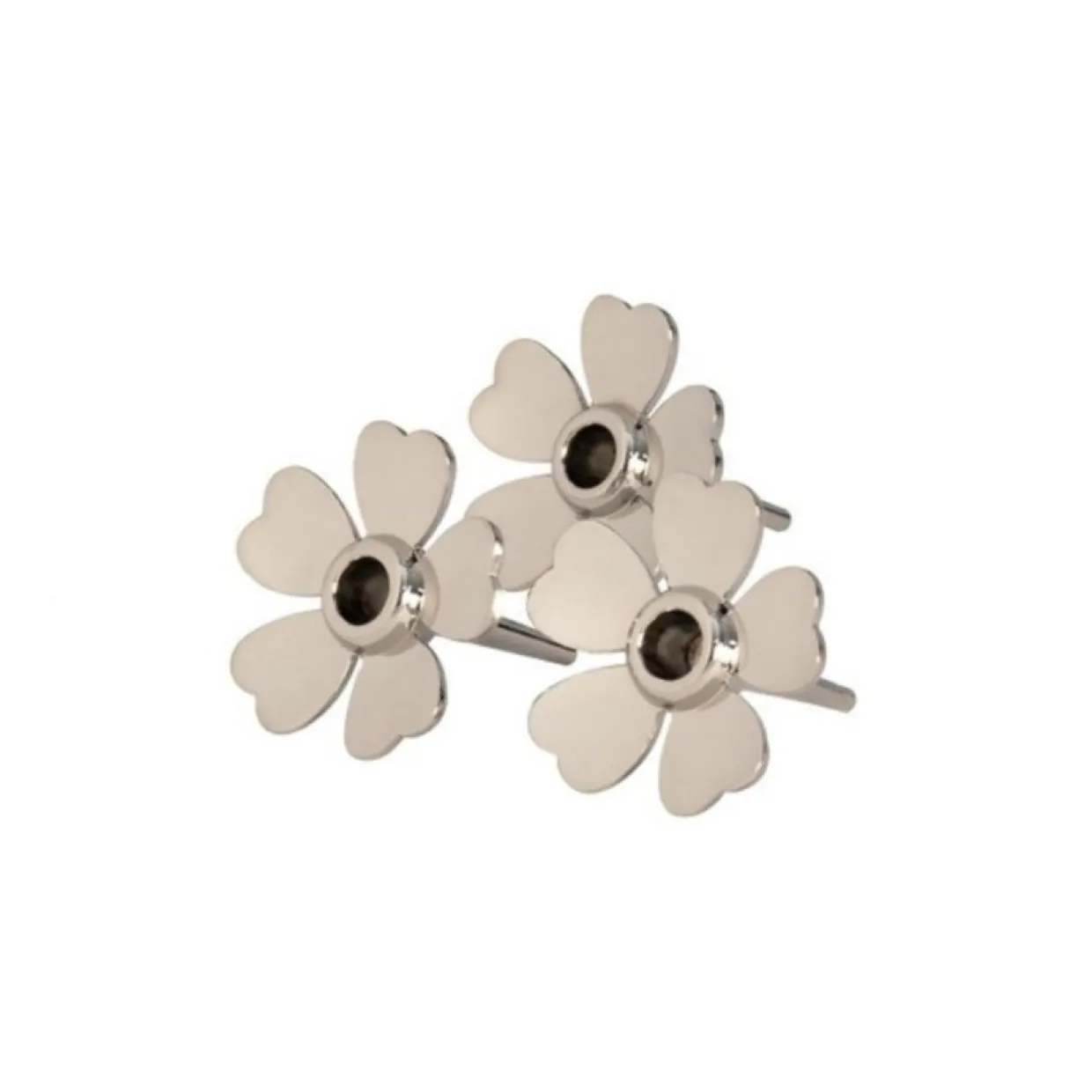 Vackra tårtljushållare i formen av en blomma som fint kommer att pryda din födelsedagstårta. De här tårtljushållarna i 3-pack från Design House Stockholm har en klassisk hjärtformad design som liknar rosenblad, en design som påminner om den medeltida sången Bro Bro Breja från midsommarafton. Nickelpläterad och tillverkad av zink.