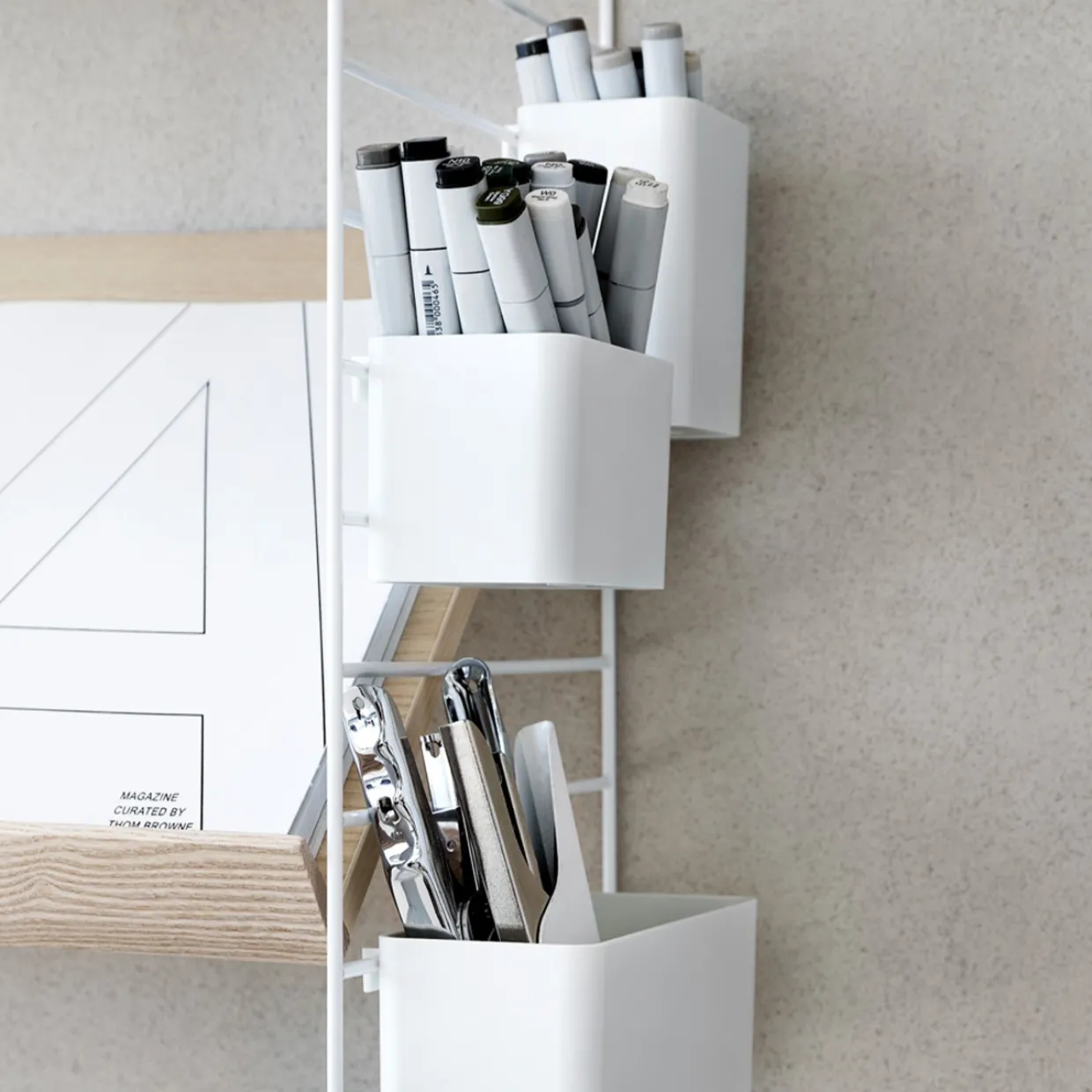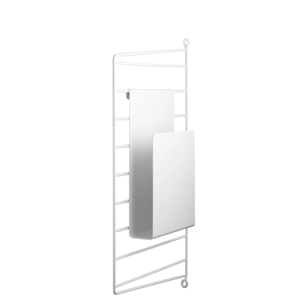 Tidskriftssamlaren passar att hänga på trådgavlar från String® System med 20 och 30 cm djup. Tidskriftssamlaren är designad för att öka hyllans funktionalitet och göra det möjligt för fler och kreativa förvaringslösningar. Den passar såväl till din kökshylla, där den håller ordning på dina matlagningsmagasin, eller i vardagsrummet vid din läshörna för att ha lätt tillgång till din bok.