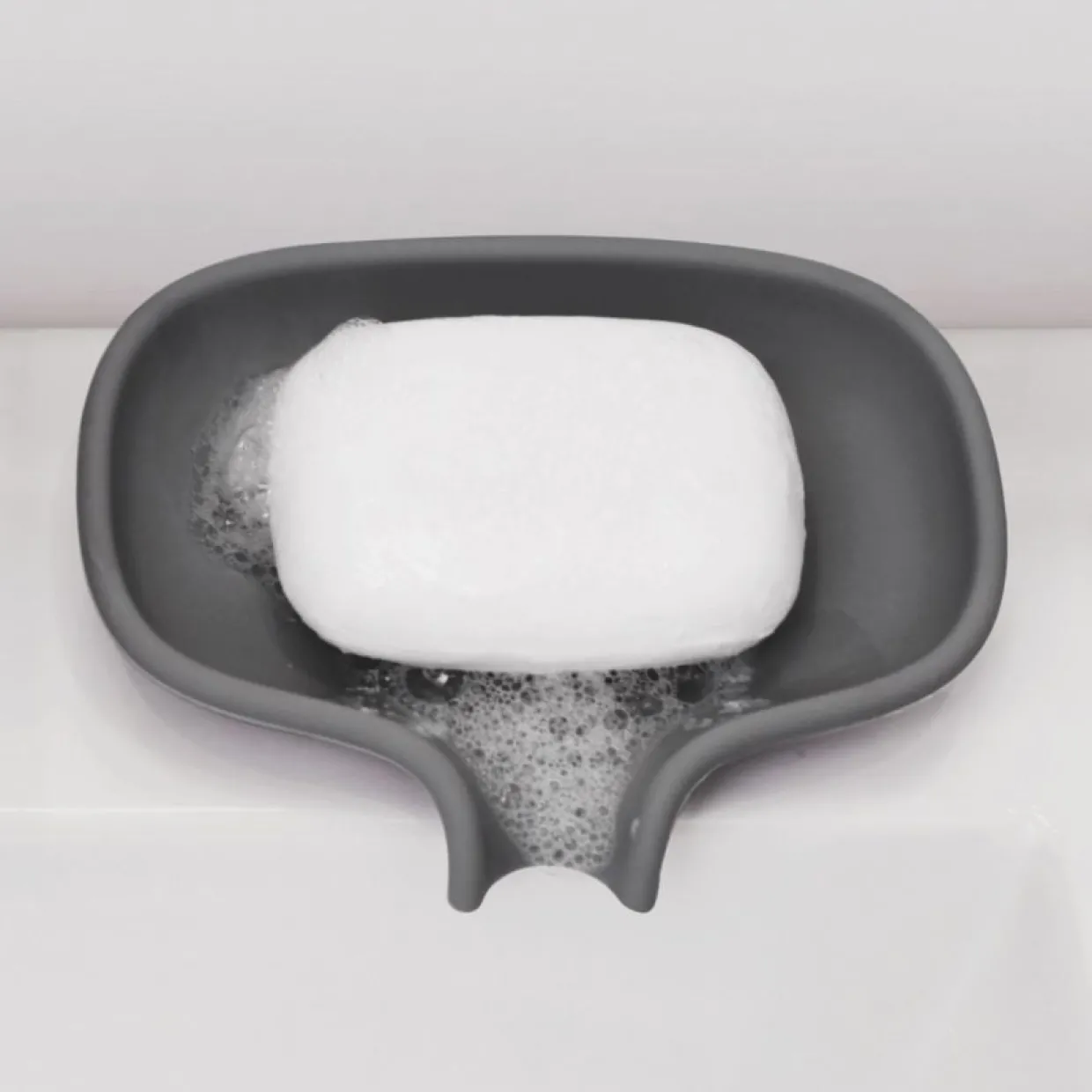 Ett snyggt och praktiskt tvålfat från Bosign som håller tvålen fräsch genom naturlig avrinning av överflödigt vatten via avrinningspipen. Tvålen vilar på en en svag upphöjning i mitten som gör att luft kan flöda fritt runt tvålen, en lösning som både sparar tvålen och håller den torr längre. Tvålfatet ligger stadigt på handfatet i badrummet och på köksbänken. Riskerar inte att gå sönder om det tappas på golv eller råkar ut för andra incidenter, idealiskt för alla småbarnsfamiljer. Passar även tvålar av lite större modell.