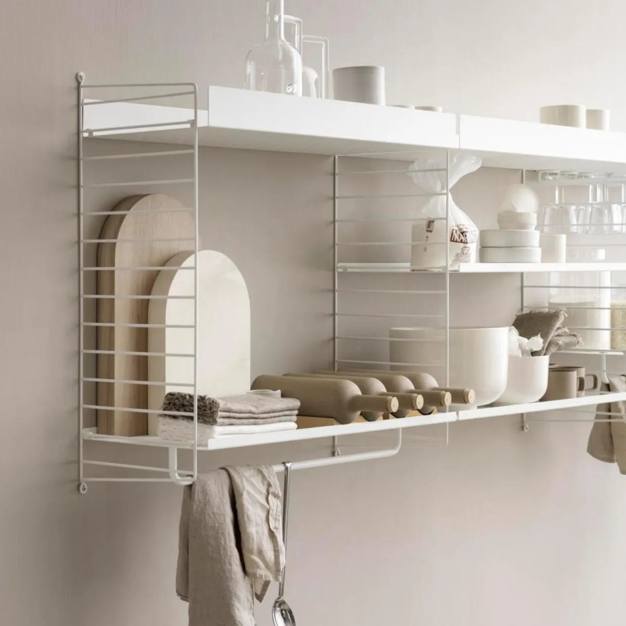 Väggavlarna finns i två höjder, 50 cm och 75 cm, samt två djup, 20 cm och 30 cm. Gavlarna är basen för att bygga din stringhylla. Därefter kan du addera produkter från String System. Välj mellan en rad olika produkter så som hyllplan och skåp. Väggaveln skruvas fast på väggen och rör varken golv eller tak vilket gör den flexibel och lätt att anpassa efter utrymmet. För att göra din hylla ännu mer funktionell och unik kan du även komplettera med organizers och s-krokar som hängs på gaveln. Väggavlarna säljs i både 1-pack och 2-pack.