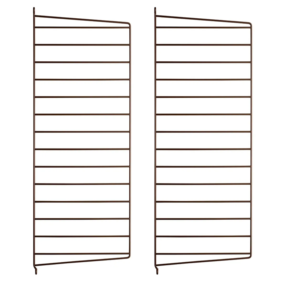 Väggavlarna finns i två höjder, 50 cm och 75 cm, samt två djup, 20 cm och 30 cm. Gavlarna är basen för att bygga din stringhylla. Därefter kan du addera produkter från String System. Välj mellan en rad olika produkter så som hyllplan och skåp. Väggaveln skruvas fast på väggen och rör varken golv eller tak vilket gör den flexibel och lätt att anpassa efter utrymmet. För att göra din hylla ännu mer funktionell och unik kan du även komplettera med organizers och s-krokar som hängs på gaveln. Väggavlarna säljs i både 1-pack och 2-pack.