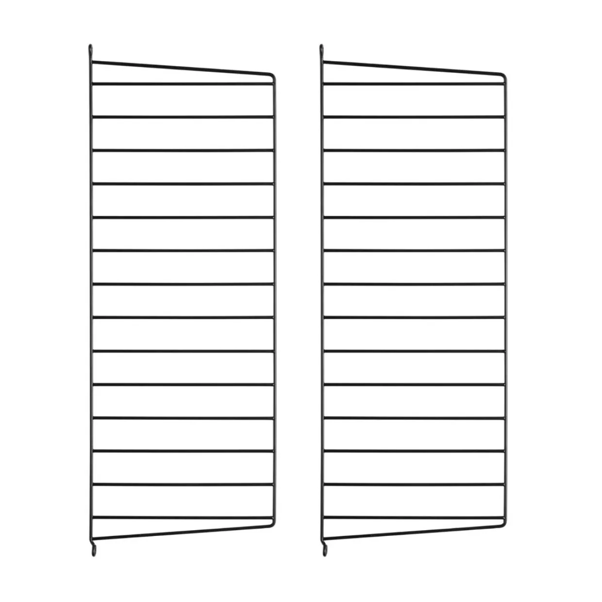 Väggavlarna finns i två höjder, 50 cm och 75 cm, samt två djup, 20 cm och 30 cm. Gavlarna är basen för att bygga din stringhylla. Därefter kan du addera produkter från String System. Välj mellan en rad olika produkter så som hyllplan och skåp. Väggaveln skruvas fast på väggen och rör varken golv eller tak vilket gör den flexibel och lätt att anpassa efter utrymmet. För att göra din hylla ännu mer funktionell och unik kan du även komplettera med organizers och s-krokar som hängs på gaveln. Väggavlarna säljs i både 1-pack och 2-pack.