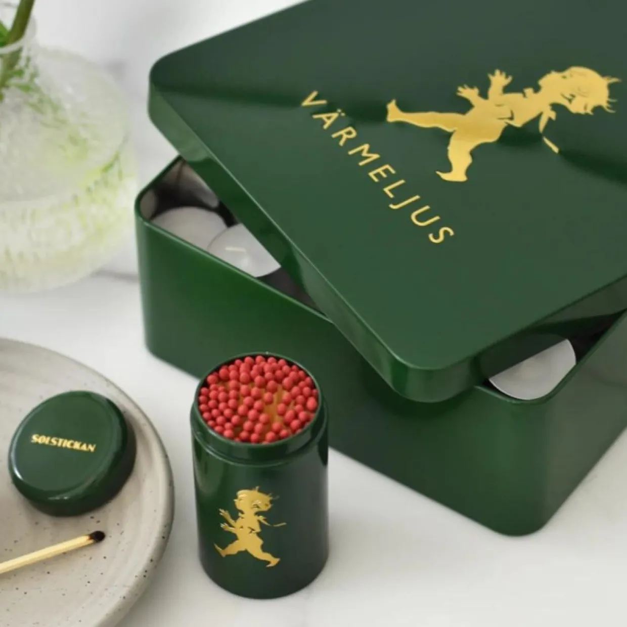 Dekorativ och smart förvaringslåda för värmeljus från Solstickan. Lådan har plats för 100 stycken värmeljus. Perfekt att ge bort som present eller julklapp!