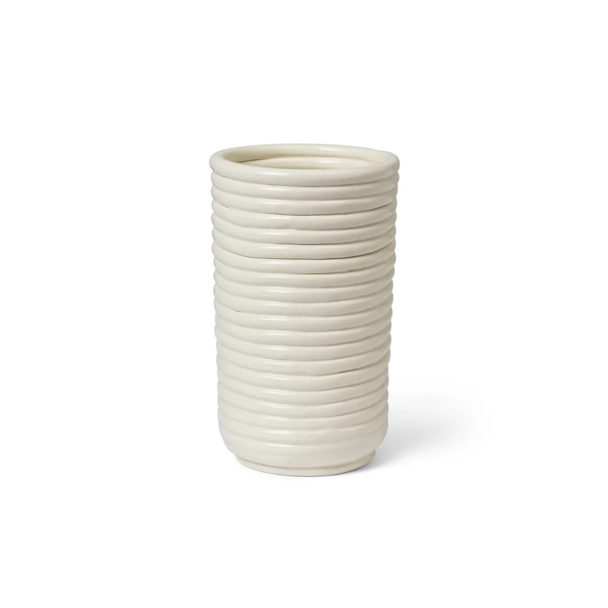Corduroy-vasen är noggrant skapad av glaserad keramik och ger ditt vardagsrum en genuin känsla av hantverk. Vasen är formad för hand genom att en lång sträng av lera varsamt rullas till en cylinder.