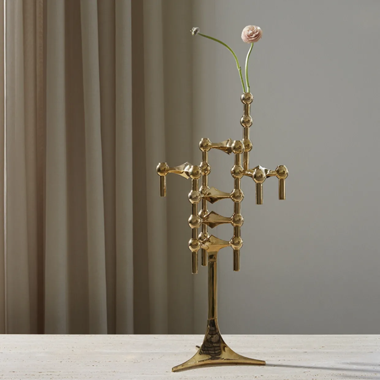 Den är formgiven som en naturlig förlängning av STOFF Nagels karakteristiska uttryck och kan kombineras med både ljusstakarna, skålen och stället. Vasen tillför en extra dimension till den klassiska designen och gör det möjligt att addera en färgstark blomdekoration efter din egen smak.