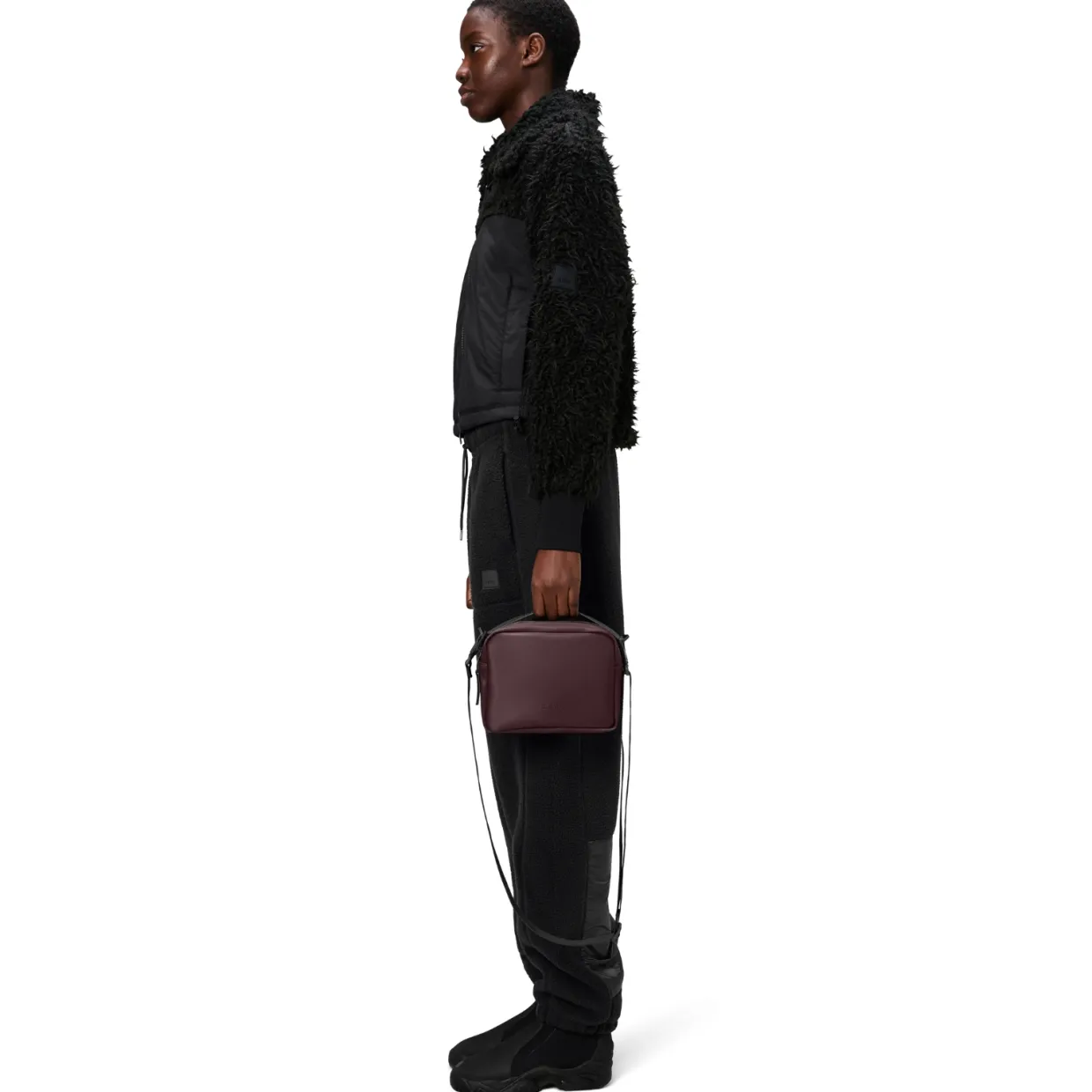 Box Bag är en ren men ändå funktionell vattentät väska, designad för att bäras över axeln, över kroppen eller som en handväska. Dess minimala boxiga siluett kan enkelt stylas och är en idealisk storlek för att bära ett extra lager och dagliga nödvändigheter. Designen är avslutad med en justerbar bandrem, fäst med karbinhakar. Box Bag är skuren i Rains signatur vattentäta PU-tyg, konstruerad för att bära styrka, hållbarhet och en smidig känsla.