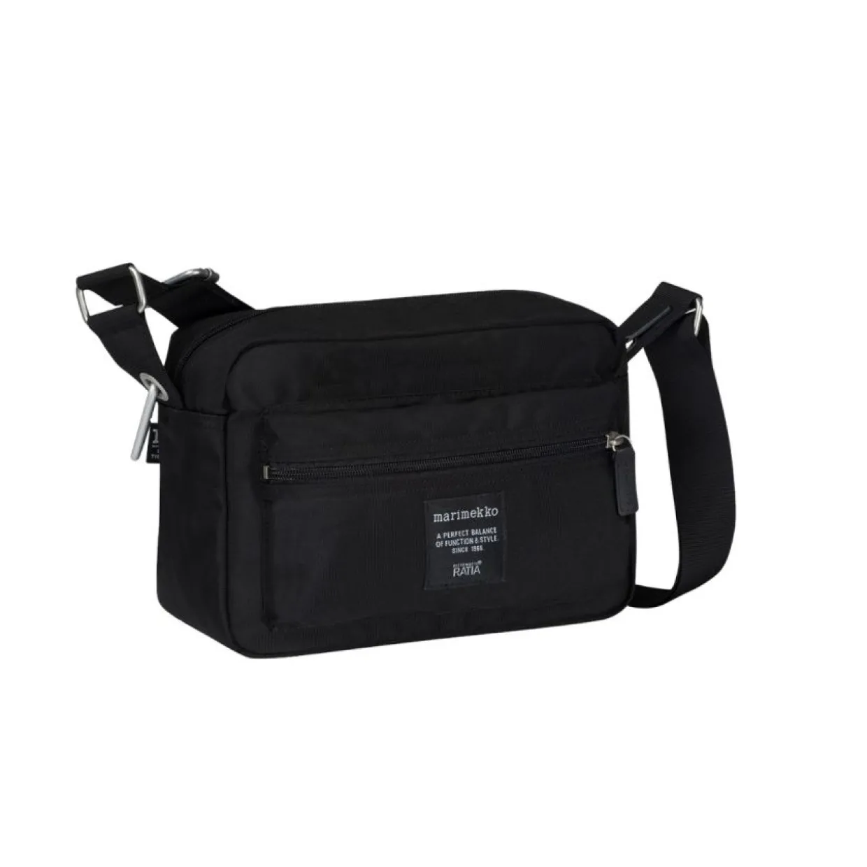 My Things-axelväskan i svart från Marimekko är en funktionell och stilren väska. Axelväskan My Things har en dragkedja, en justerbar axelrem, blixtlåsfickor fram och bak på utsidan och fyra fickor på insidan.