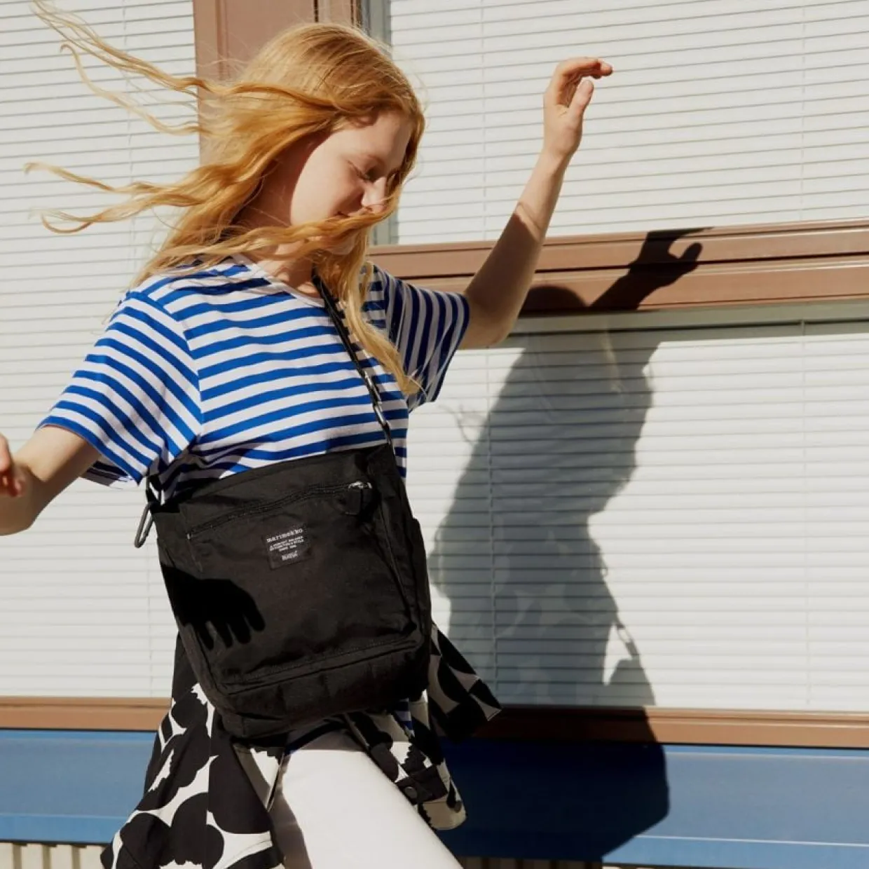 Väskan Pal bag i svart från Marimekko är en polyamid axelväska som är perfekt för vardagsbruk: den har en justerbar rem och har tre praktiska ytterfickor, varav två har dragkedja. Det finns även en extra blixtlåsficka inuti, vilket gör det enkelt att hålla koll på grejerna i väskan.