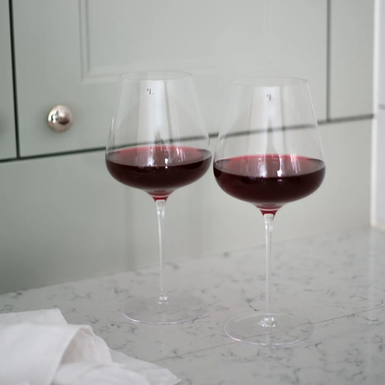 Vinglaset har en vid kupa nedtill med en smalare öppning, vilket släpper fram fruktsötman samtidigt som det mildrar vinets syror och tanniner.
